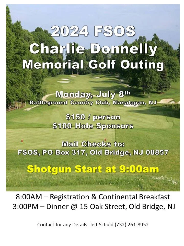 2024 FSOS Charlie Donnelly Memorial Golf Outing Monday, July 8, 2024 8:00 AM 3:00 PM Battleground Country Club 1 Covenhoven Road Manalapan Township, NJ, 07726 United States (map) Google Calendar ICS