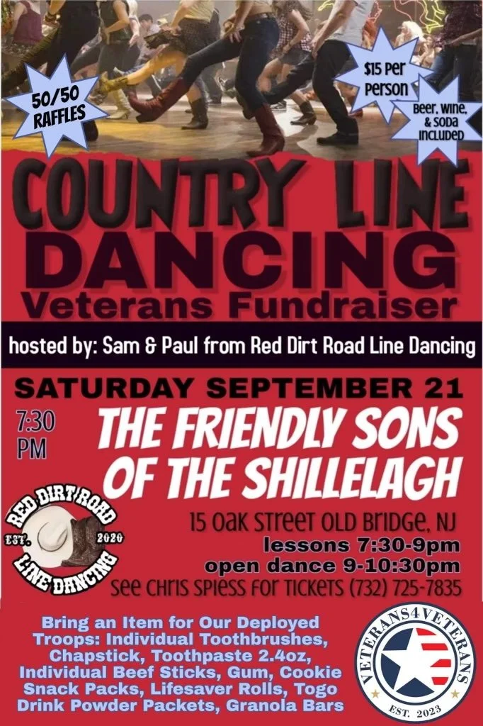 Country Line Dancing Fundraiser Saturday, September 21, 2024 7:30 PM 9:30 PM Friendly Sons of The Shillelagh 15 Oak Street Old Bridge, NJ, 08857 United States (map) Google Calendar ICS